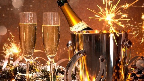 Nytårsgudstjeneste. Bagefter er der bobler og kransekage i salen.